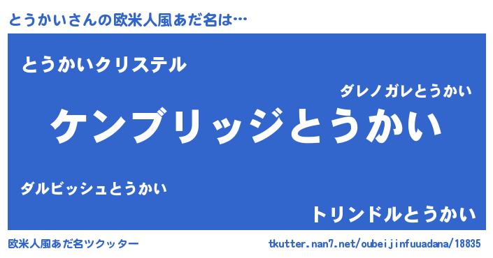| 男性向けラノベタイトル風あだ名 | 『Re:とうかいから始める異世界生活』 |