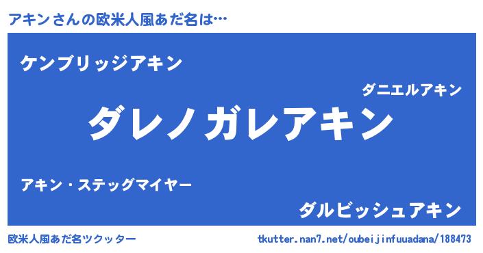 | 男性向けラノベタイトル風あだ名 | 『この素晴らしい世界にアキンを!』 |