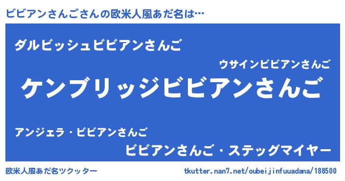 | 男性向けラノベタイトル風あだ名 | 『Re:ビビアンさんごから始める異世界生活』 |