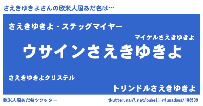 | 男性向けラノベタイトル風あだ名 | 『さえきゆきよの嫁は女の子じゃないと思った?』 |