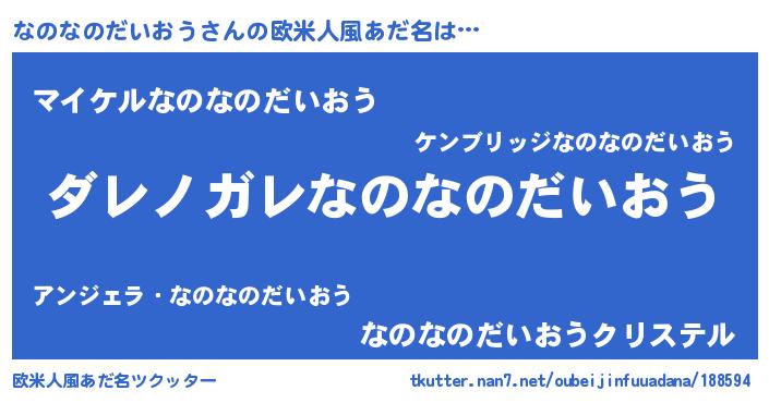 | 意味不明あだ名 | 『住所不定無職なのなのだいおう(4歳)』 |