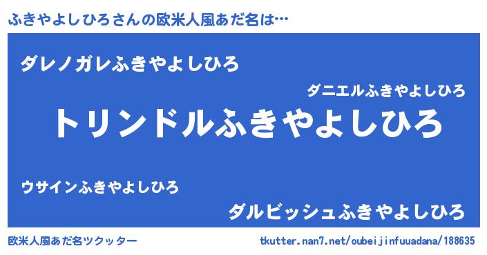 | ヘコむあだ名 | 『ふきやよしひろ(爆)』『ふきぷりん』 |
