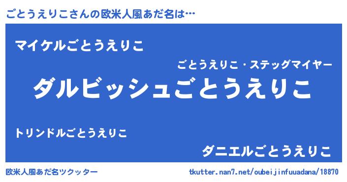 | 女子向けラノベタイトル風あだ名 | 『ごとうえりこの契約王妃』 |