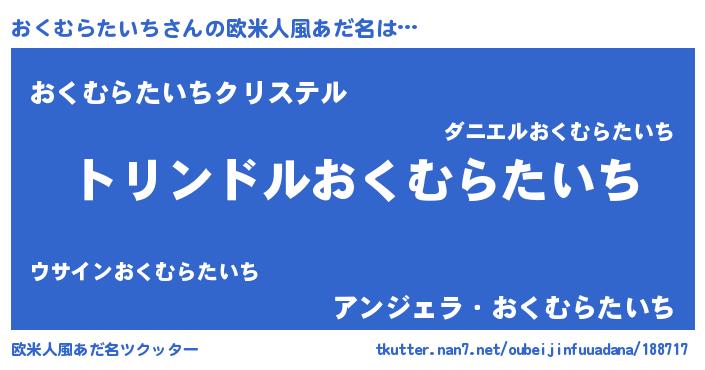 | 女子向けラノベタイトル風あだ名 | 『おくむらたいちの玉の輿計画!』 |