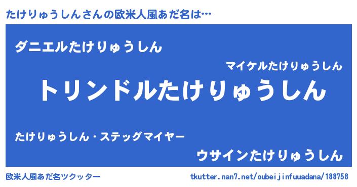 | 男性向けラノベタイトル風あだ名 | 『転生したらたけりゅうしんだった件』 |
