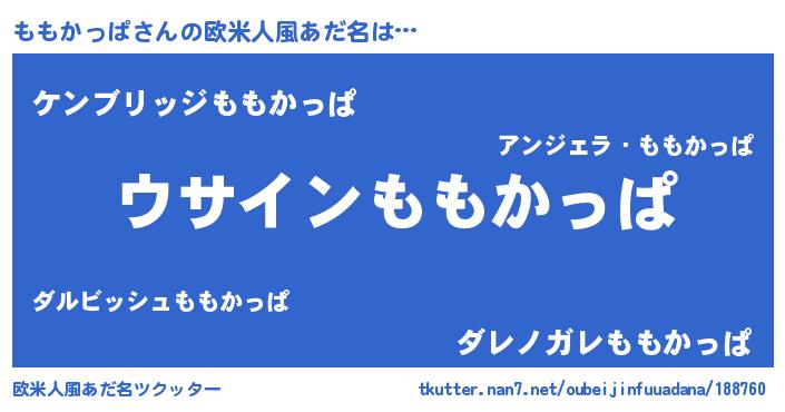 | 男性向けラノベタイトル風あだ名 | 『ももかっぱの嫁は女の子じゃないと思った?』 |