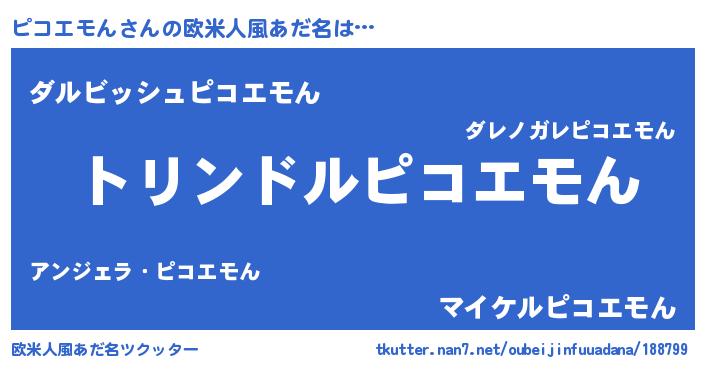 | 男性向けラノベタイトル風あだ名 | 『ピコエモん~年齢イコール彼女いない歴の魔法使い~』 |