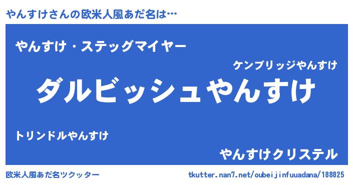 | 男性向けラノベタイトル風あだ名 | 『やんすけという概念が存在しない退屈な世界 』 |