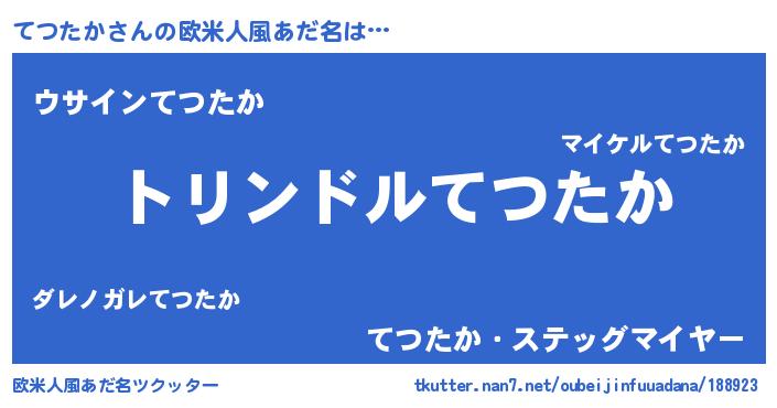 | 男性向けラノベタイトル風あだ名 | 『転生したらてつたかだった件』 |