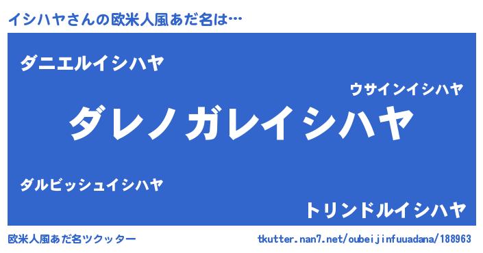 | ヒーロー風カッコイイあだ名 | 『仮面イシダー』『慈愛の使者イシハヤ』 |