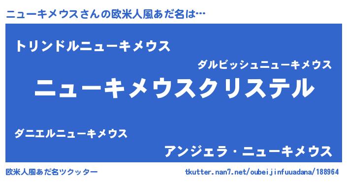 | 男性向けラノベタイトル風あだ名 | 『やはりニューキメウスの青春ラブコメはまちがっている 』 |