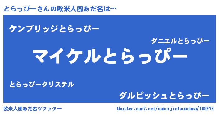 | 意味不明あだ名 | 『ペロリンとらっぴー』『自称とらっぴー』 |
