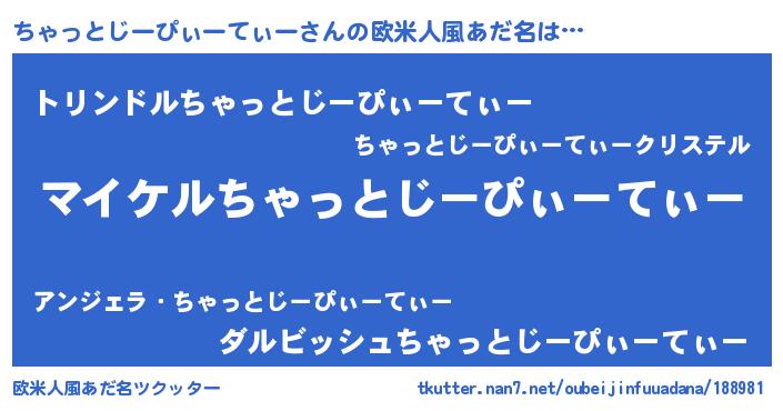| 胡散臭い通販商品みたいなあだ名 | 『モテモテ間違いなし霊験あらたかなお札…その名も「ちゃっとじーぴぃーてぃー」』 |