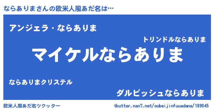 | 女子向けラノベタイトル風あだ名 | 『ならありま姫と円卓の騎士』 |