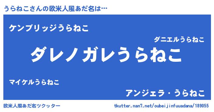 | 男性向けラノベタイトル風あだ名 | 『この素晴らしい世界にうらねこを!』 |