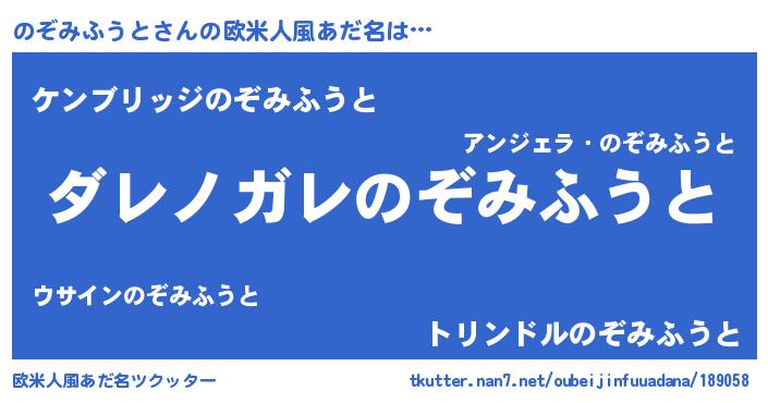 | 意味不明あだ名 | 『住所不定無職のぞみふうと(79歳)』 |