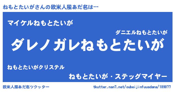 | 意味不明あだ名 | 『住所不定無職ねもとたいが(4歳)』 |