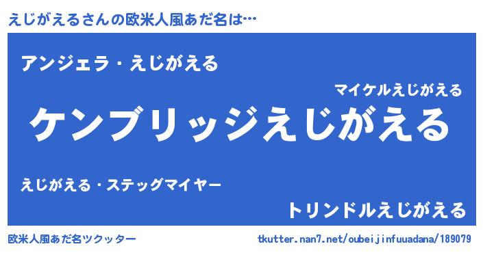 | 男性向けラノベタイトル風あだ名 | 『Re:えじがえるから始める異世界生活』 |