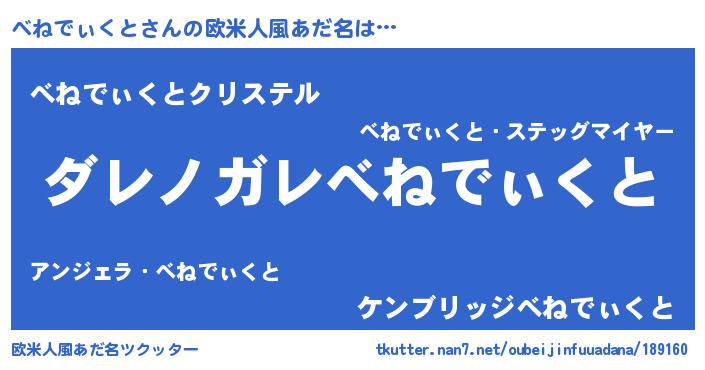 | 意味不明あだ名 | 『住所不定無職べねでぃくと(39歳)』 |