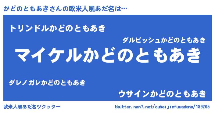 | 男性向けラノベタイトル風あだ名 | 『カドノトモアキアートオンライン』 |
