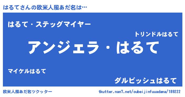 | 男性向けラノベタイトル風あだ名 | 『はたらくはるてさま!』『緋弾のハルテ』 |