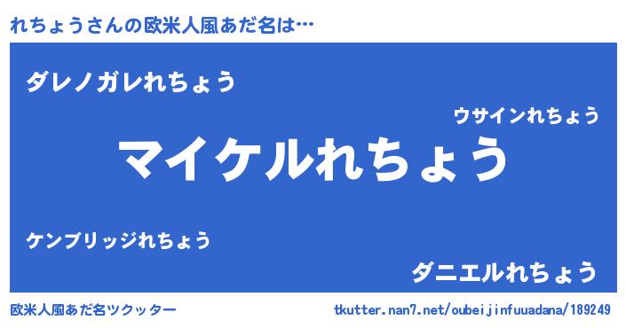 | 男性向けラノベタイトル風あだ名 | 『れちょうの憂鬱』『魔弾の王とれちょう』 |