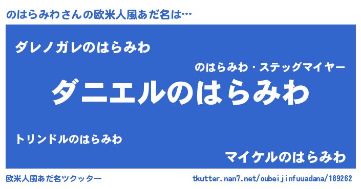 | 男性向けラノベタイトル風あだ名 | 『ノーゲーム・ノーノハラミワ』 |