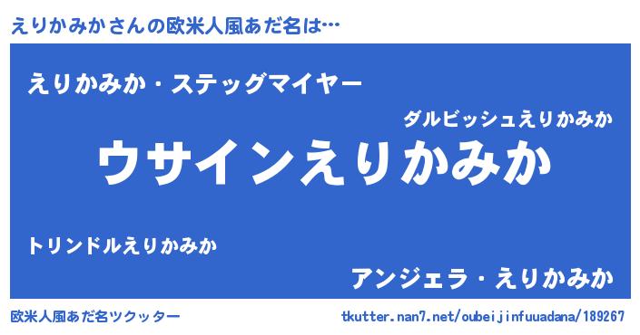 | 男性向けラノベタイトル風あだ名 | 『えりかみかの嫁は女の子じゃないと思った?』 |