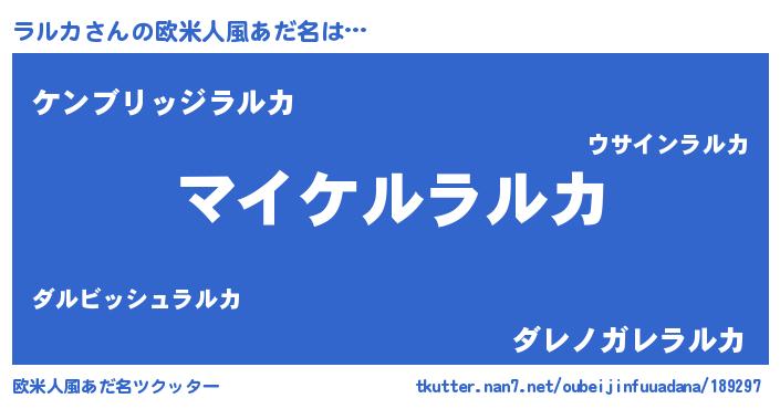 | 男性向けラノベタイトル風あだ名 | 『ラルカの憂鬱』『魔法科高校のラルカ』 |