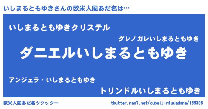 | 男性向けラノベタイトル風あだ名 | 『おまえをオタクにしてやるから、俺をいしまるともゆきにしてくれ! 』 |