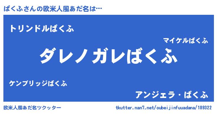 | 意味不明あだ名 | 『住所不定無職ばくふ(84歳)』『自称ばくふ』 |
