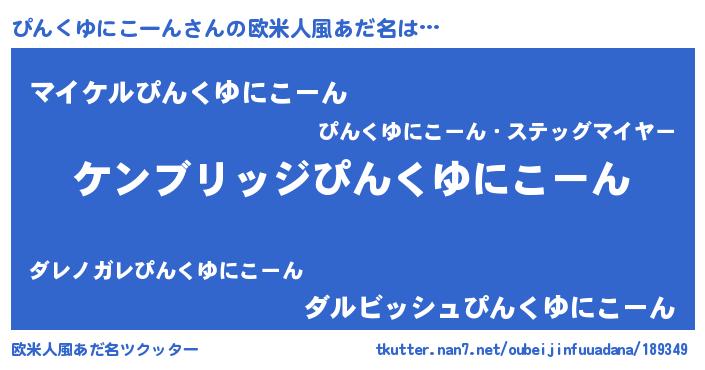 | 男性向けラノベタイトル風あだ名 | 『Re:ぴんくゆにこーんから始める異世界生活』 |