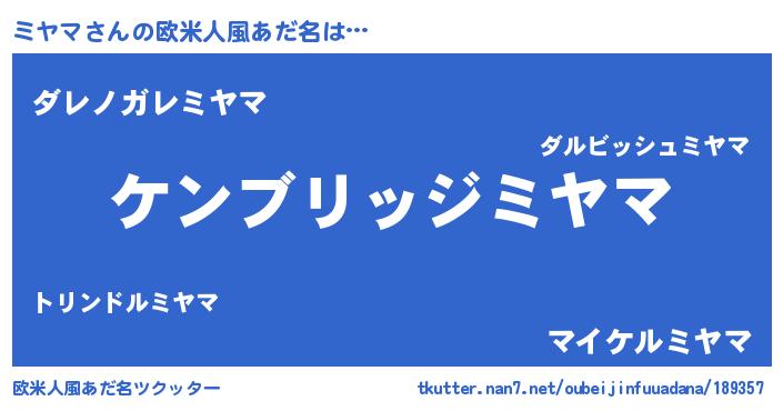 | 意味不明あだ名 | 『自称ミヤマ』『住所不定無職ミヤマ(91歳)』 |