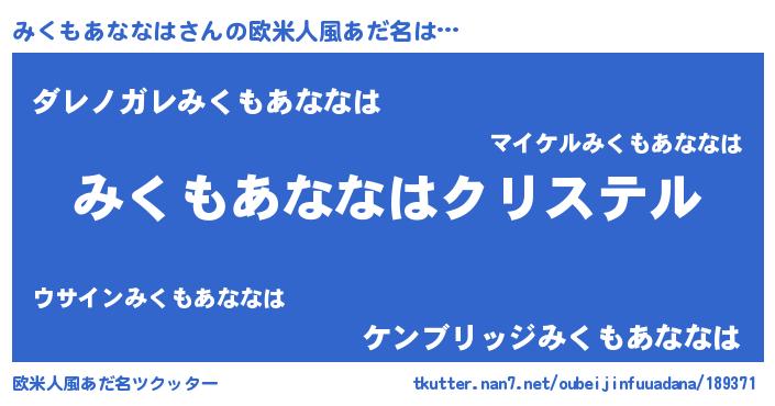 | ファンタジー風あだ名 | 『エターナルミクモアナナハー』 |
