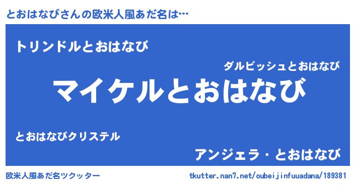 | 男性向けラノベタイトル風あだ名 | 『トオハナビアートオンライン』 |