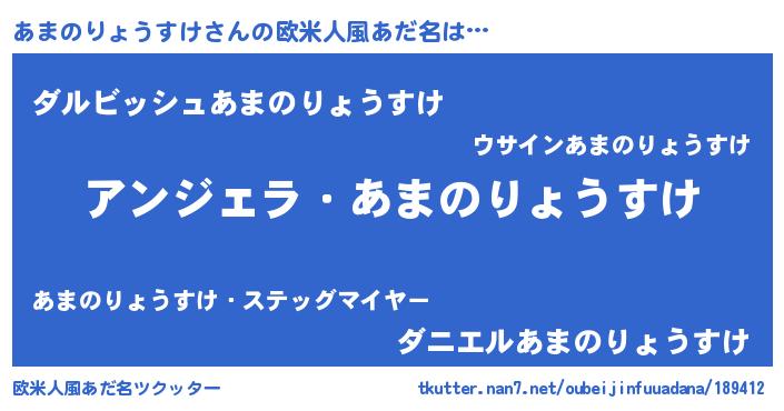 | 男性向けラノベタイトル風あだ名 | 『あまのりょうすけに滅ぼされるだけの簡単なお仕事です』 |