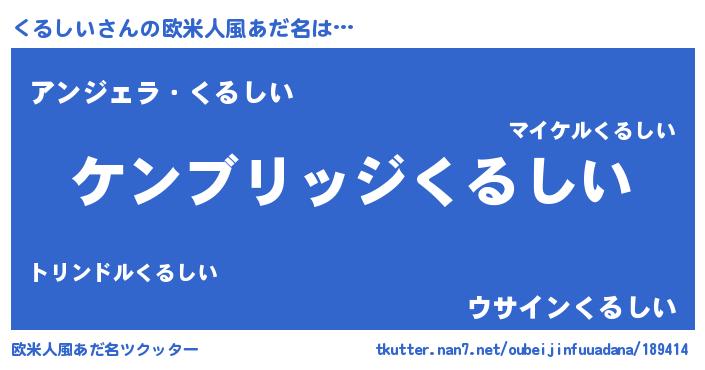 | ヒーロー風カッコイイあだ名 | 『最強戦士クルシイ』『暗黒騎士クル』 |