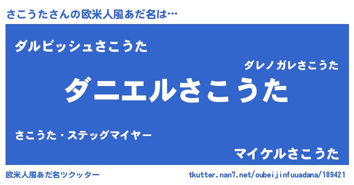 | ヒーロー風カッコイイあだ名 | 『慈愛の使者さこうた』『ネオサコウタ』 |