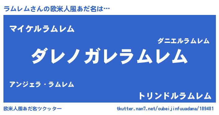 | 意味不明あだ名 | 『住所不定無職ラムレム(47歳)』 |