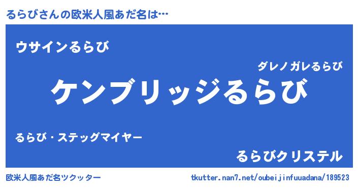 | 男性向けラノベタイトル風あだ名 | 『Re:るらびから始める異世界生活』 |