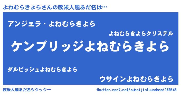 | 意味不明あだ名 | 『自称よねむらきよら』 |
