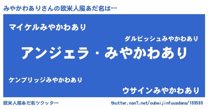 | ヘコむあだ名 | 『みやにゅー』『みやっ子』『豆乳』 |
