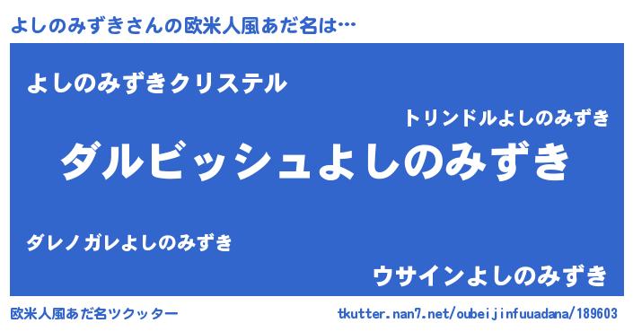 | ヘコむあだ名 | 『よしのみずき(笑)』『豆乳』 |