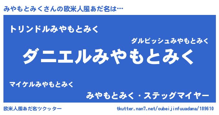 | ヘコむあだ名 | 『みやもとみく(笑)』『みやにゅー』 |