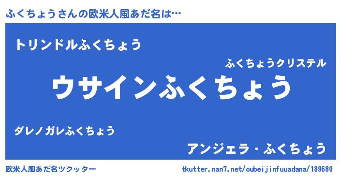 | 男性向けラノベタイトル風あだ名 | 『ふくちょうの嫁は女の子じゃないと思った?』 |