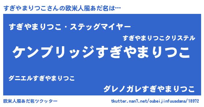 | 男性向けラノベタイトル風あだ名 | 『Re:すぎやまりつこから始める異世界生活』 |