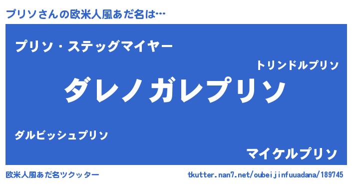 | 意味不明あだ名 | 『住所不定無職プリソ(2歳)』 |