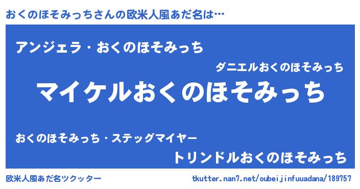 | 男性向けラノベタイトル風あだ名 | 『おくのほそみっちの憂鬱』 |