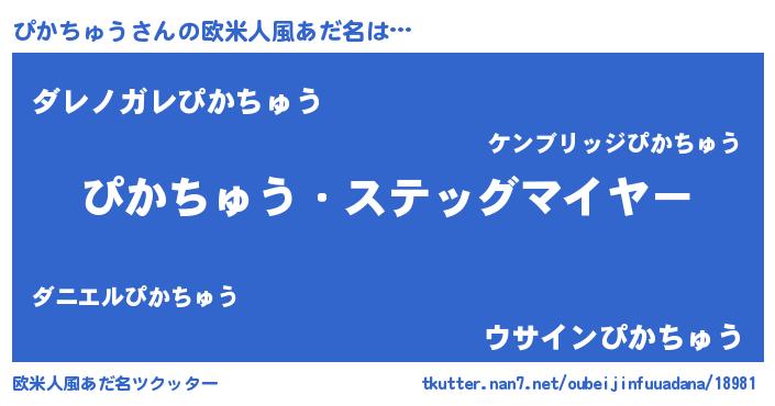 | 男性向けラノベタイトル風あだ名 | 『うちのぴかちゅうが世界を掌握している!』 |
