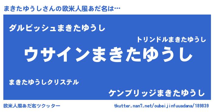 | 男性向けラノベタイトル風あだ名 | 『まきたゆうしの嫁は女の子じゃないと思った?』 |
